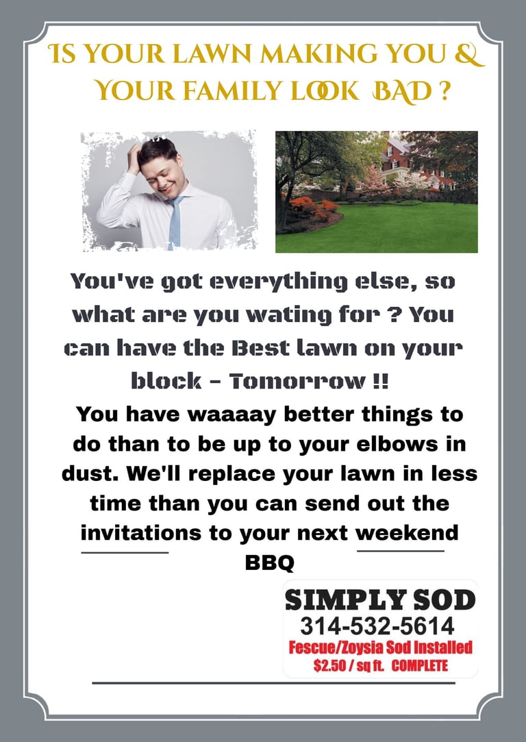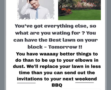 WITH OUR PROVEN, OLD-SCHOOL, SUSTAINABLE METHODS, YOU CAN HAVE THE BEST LAWN YOU'VE EVER HAD - IN 3 WEEKS !! ....OR, IN AS LITTLE AS 3 DAYS !!!